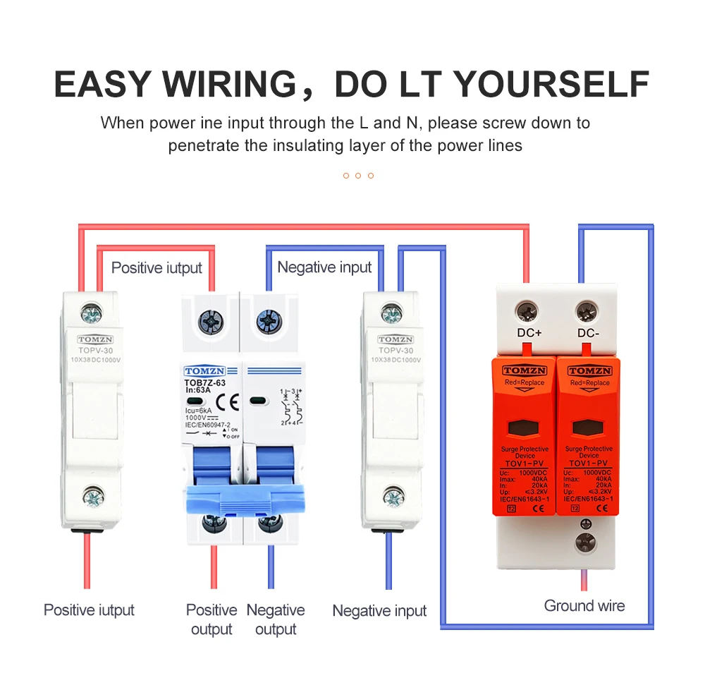 TOMZN 2P DC 500V/600V/800V/1000V SPD