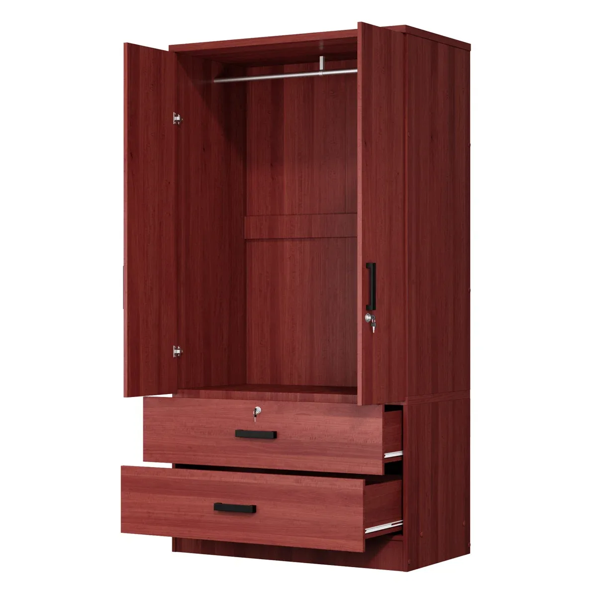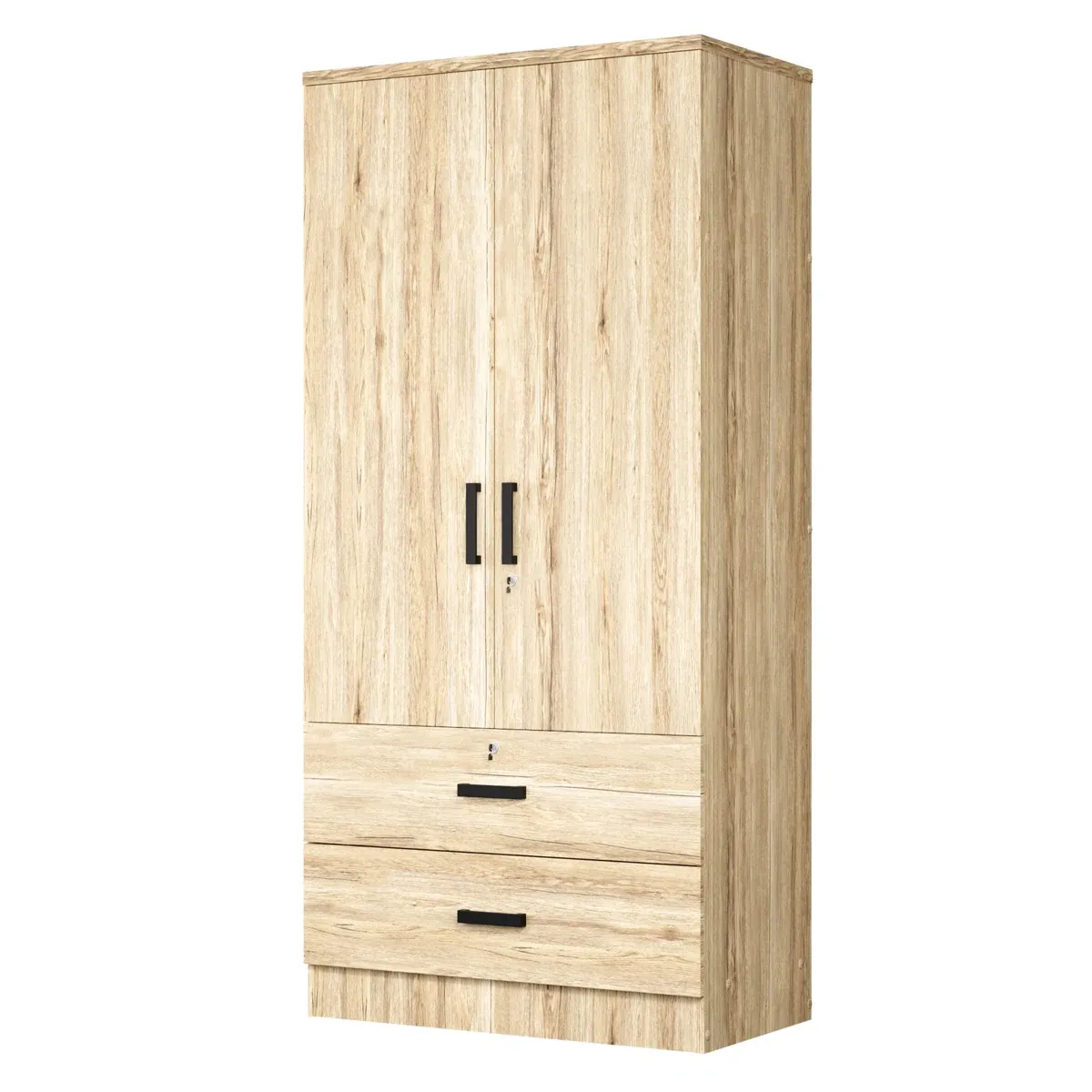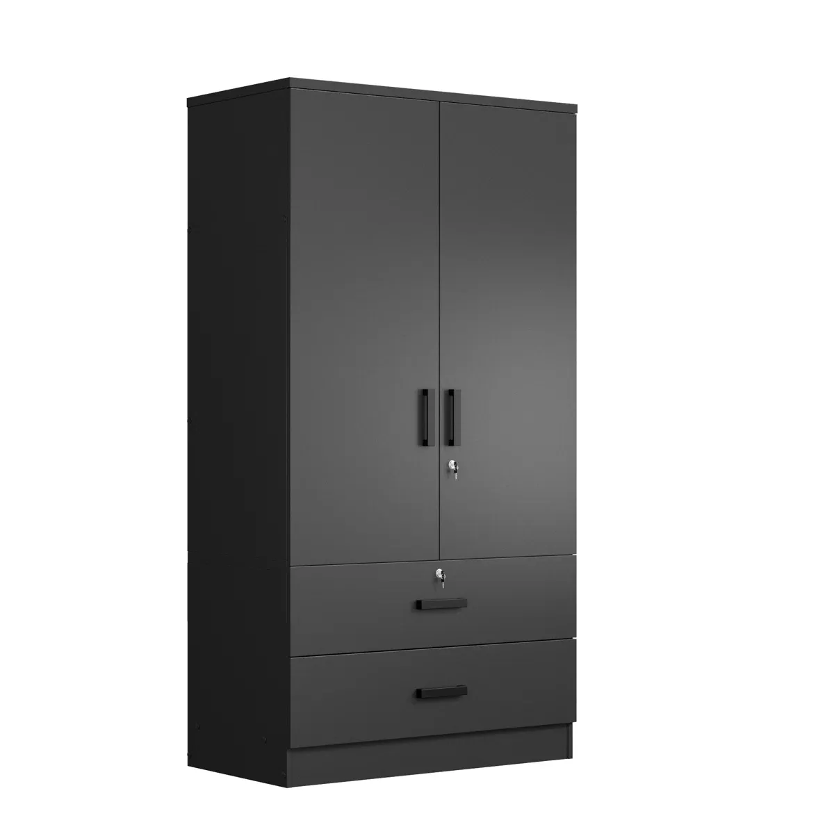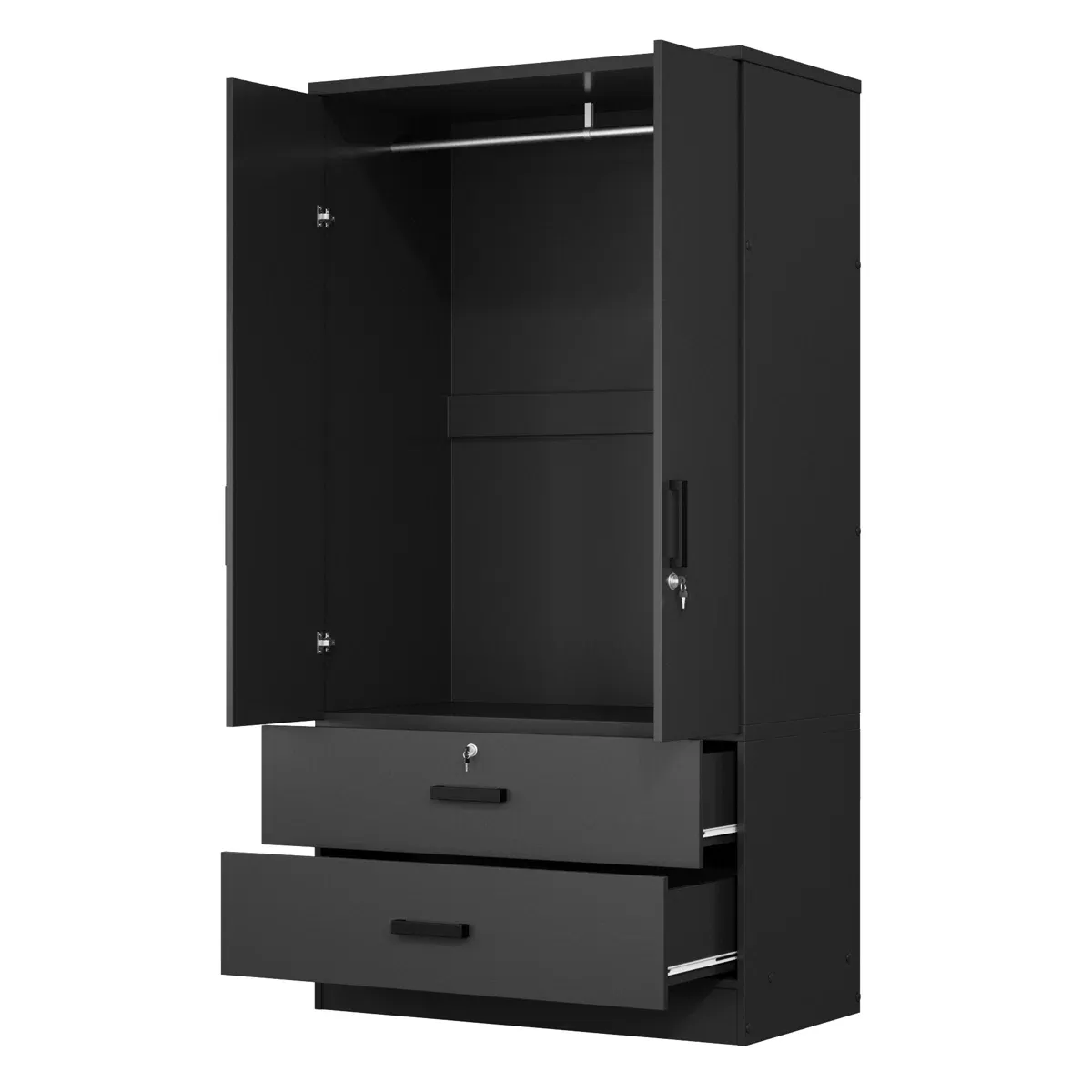 2-Door Wardrobe With Shelves 2 Large Drawers